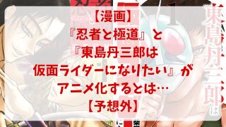 忍者と極道【漫画】『忍者と極道』と『東島丹三郎は仮面ライダーになりたい』がアニメ化するとは…【予想外】 H-LIFEです。最近、漫画読みとしてはある意味、衝撃の報告が続いたなと思ってました。『忍者と極道』(近藤信輔作)と『東島丹三郎は仮面ライダーになりたい』(柴田ヨクサル作)が思ってもみなかったアニメ化です…。(講談社コミックプラスより引用)... 2025.03.09忍者と極道東島丹三郎は仮面ライダーになりたい漫画